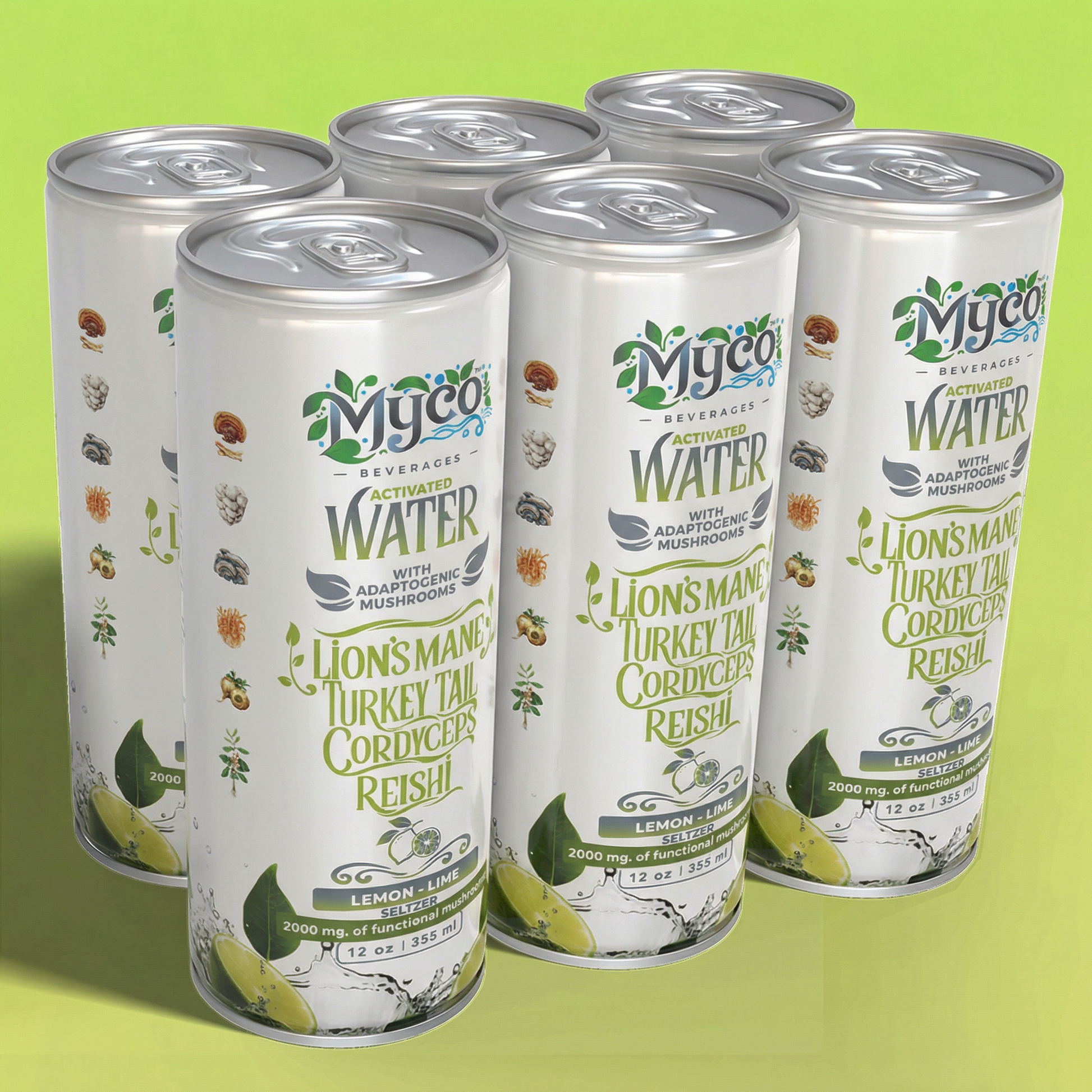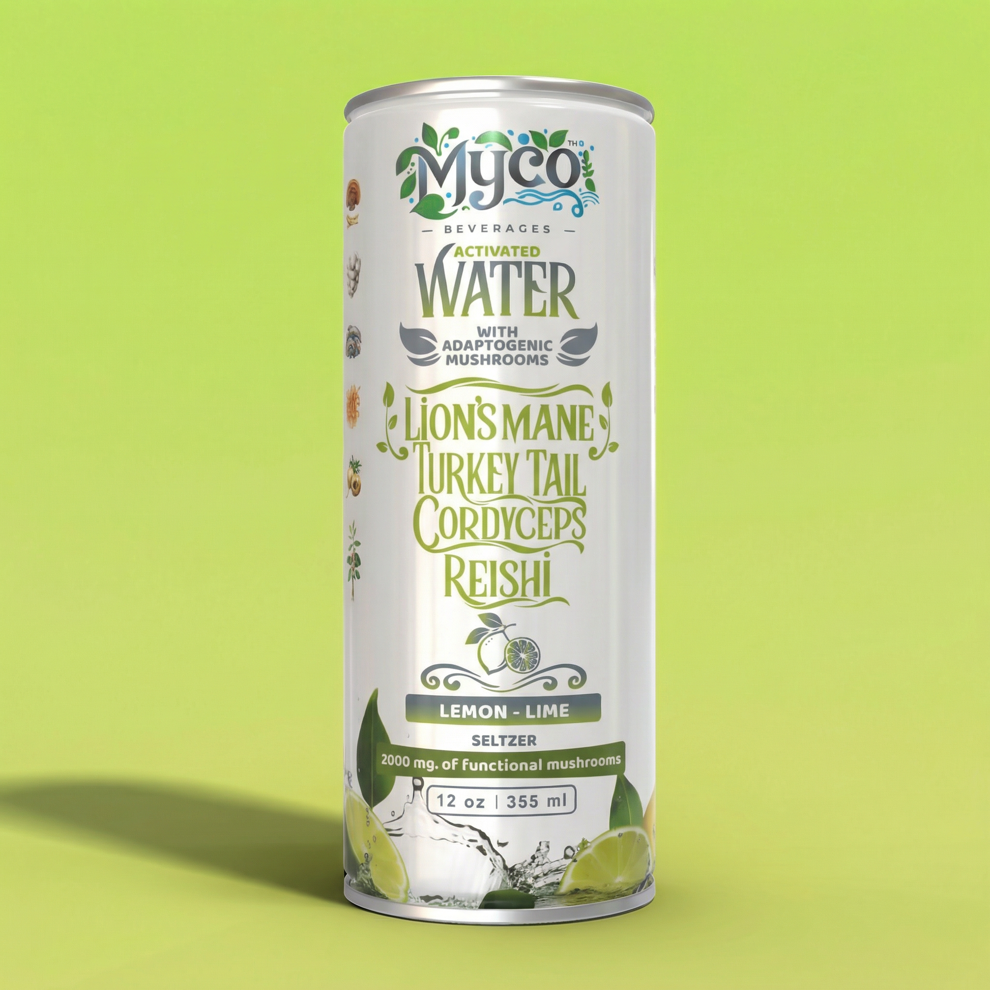 Purified water, Organic Cane Sugar, Proprietary Mushroom Bio-Blend (Reishi, Lion's Mane, Turkey Tail, Cordyceps), Natural Lemon-Lime Flavor, Citric Acid*, Cultured Dextrose*, Maca Root*, Ashwagandha*, Potassium Citrate*, Monk Fruit, Himalayan Salt, Nisin*.